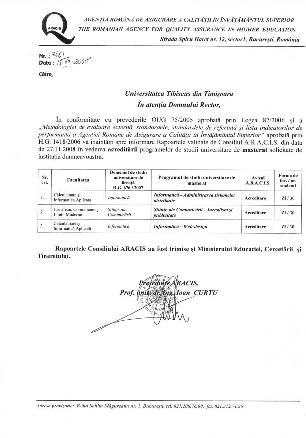 • Ordonanța 75/2005 privind asigurarea calității aprobată cu modificări și completări ulterioare [descarcă]